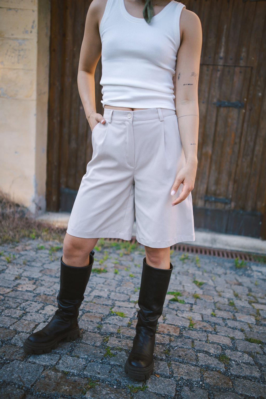 Díky delším nohavicím působí bermudy elegantně i ve chvíli, kdy je požadavek na formálnější vzhled, ale vy stále zůstáváte v dokonalém pohodlí. Černou nebo béžovou barvu lze snadno zkombinovat s bílou košilí, ležérním tričkem, svetrem i sportovní mikinou. Tenisky, lodičky, sandálky i kotníkové boty jednoduše střídáte podle příležitosti nebo nálady.