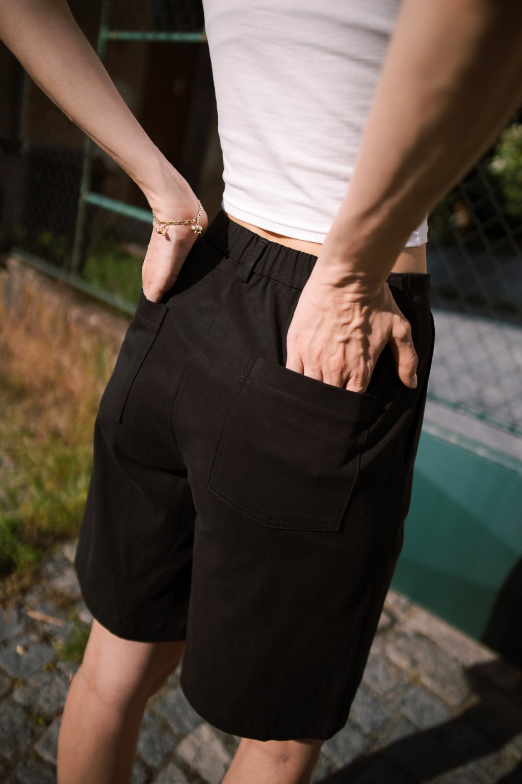 Bermudy šijeme z osvědčené přírodní směsi Tencel, bavlny a elastanu, která je lehká, vzdušná a přitom skvěle drží tvar. Praktické kapsy na bocích i vzadu využijete jak do práce, tak na drobnosti během výletů a cestování.