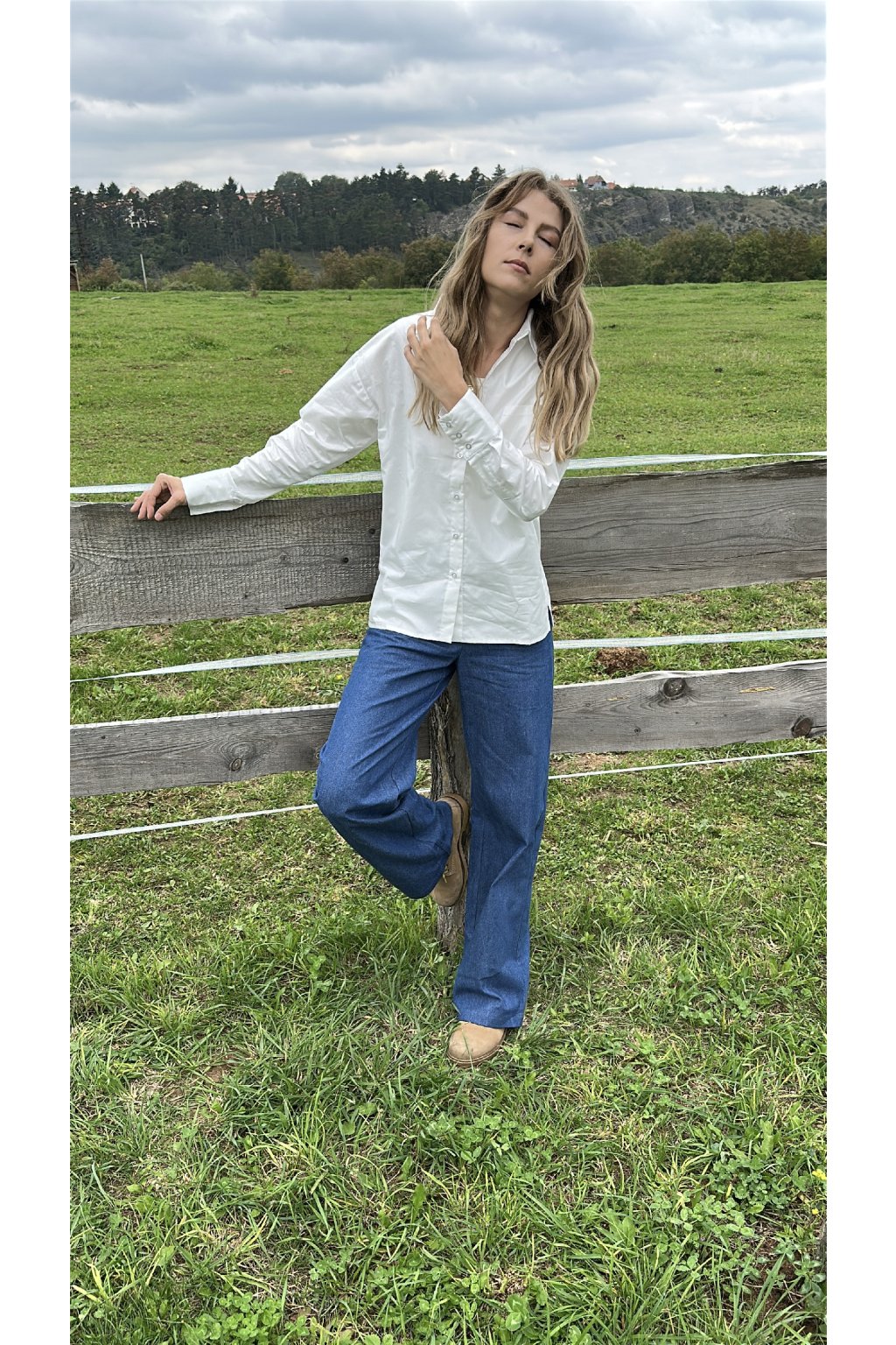 Nepředstavujte si ale těžké nepoddajné džíny, ale příjemný materiál, který přirozeně pruží a přizpůsobí se a celý den vám v něm bude krásně.