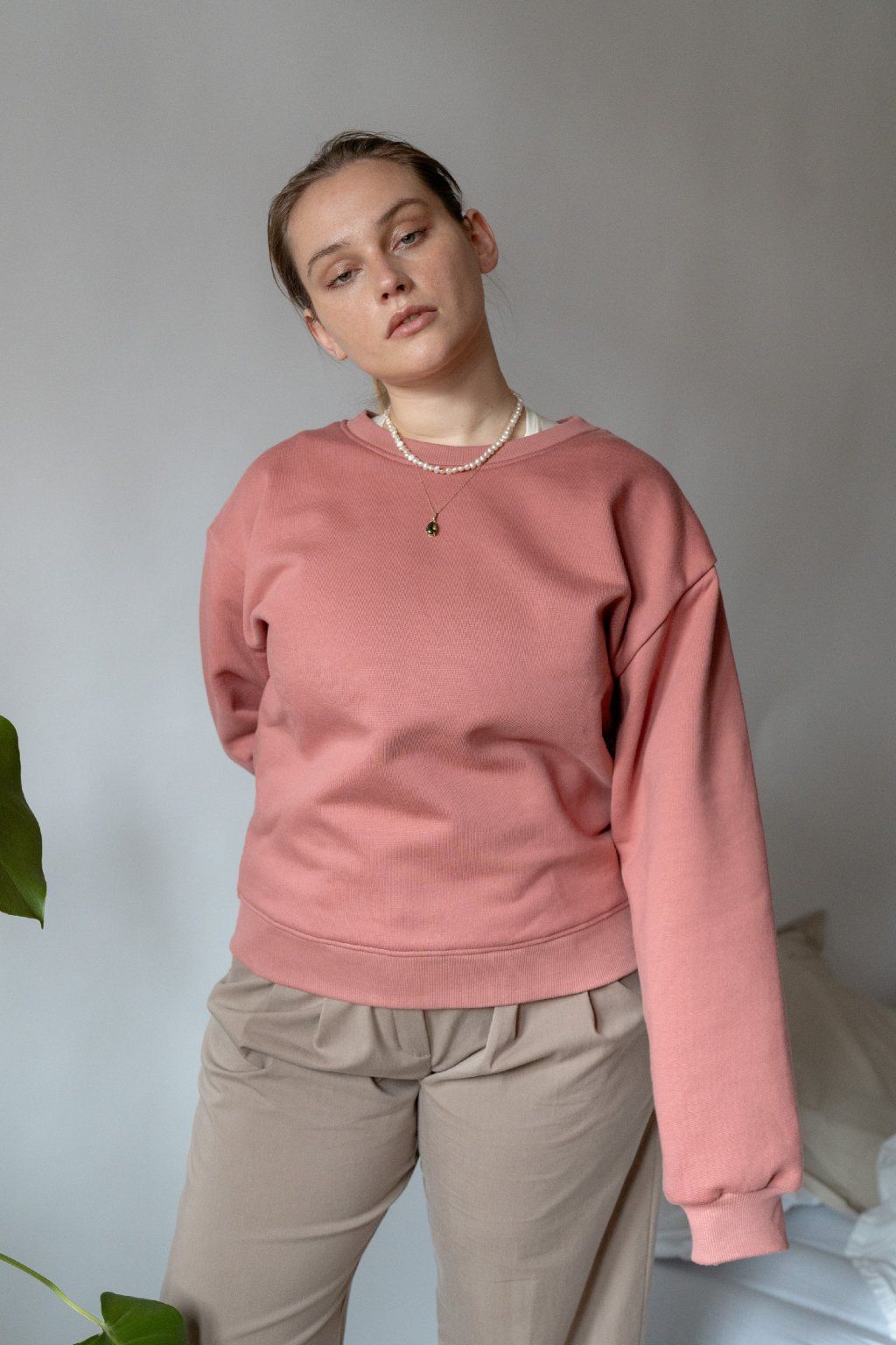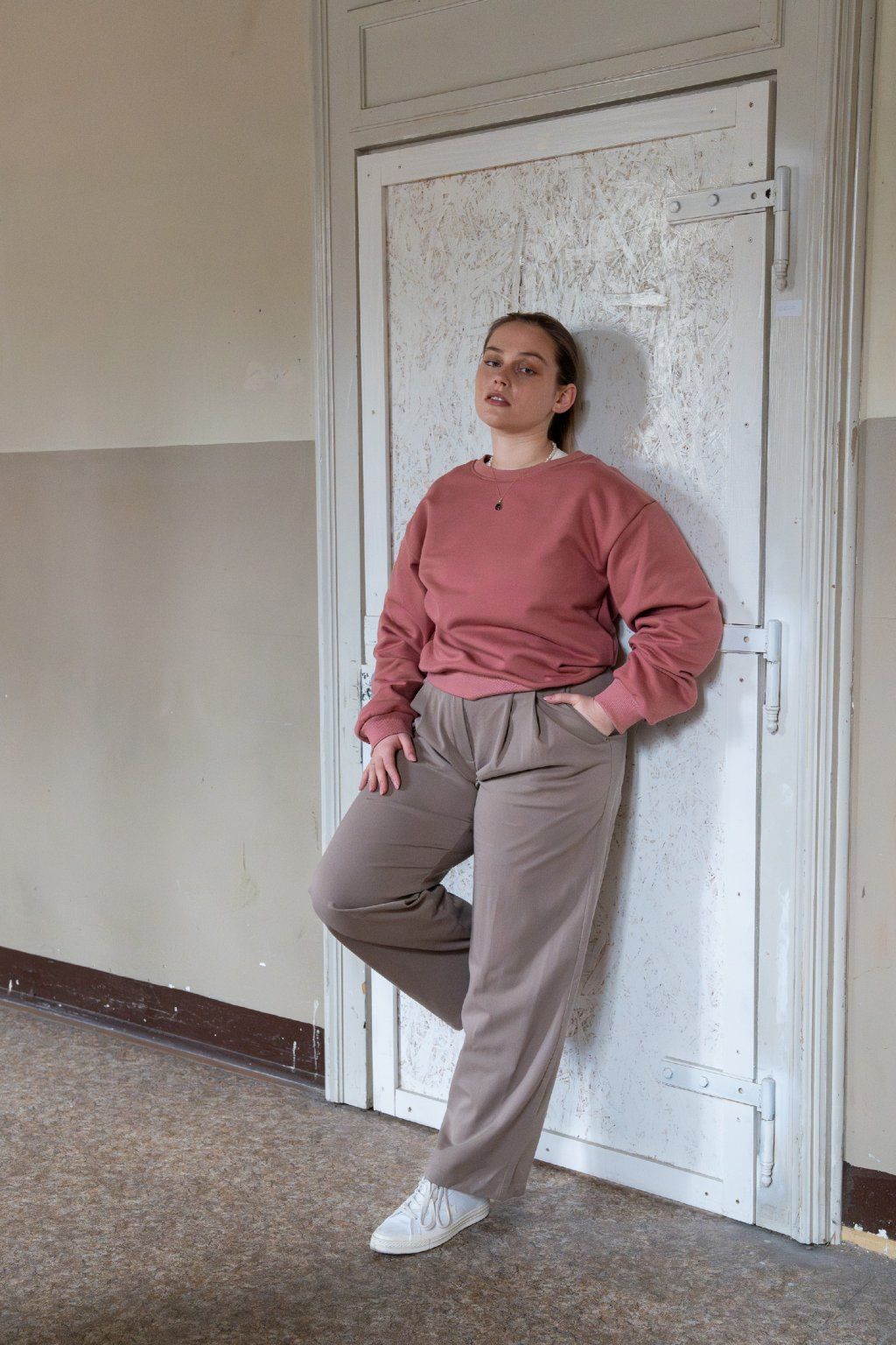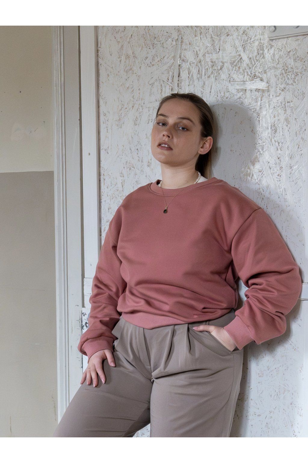 Střih: Mikina má volnější střih a rukávy. Pro extra oversized look si vyberte větší velikost, ohrňte rukávy a vpředu zastrčte přední kus mikiny do kalhot.