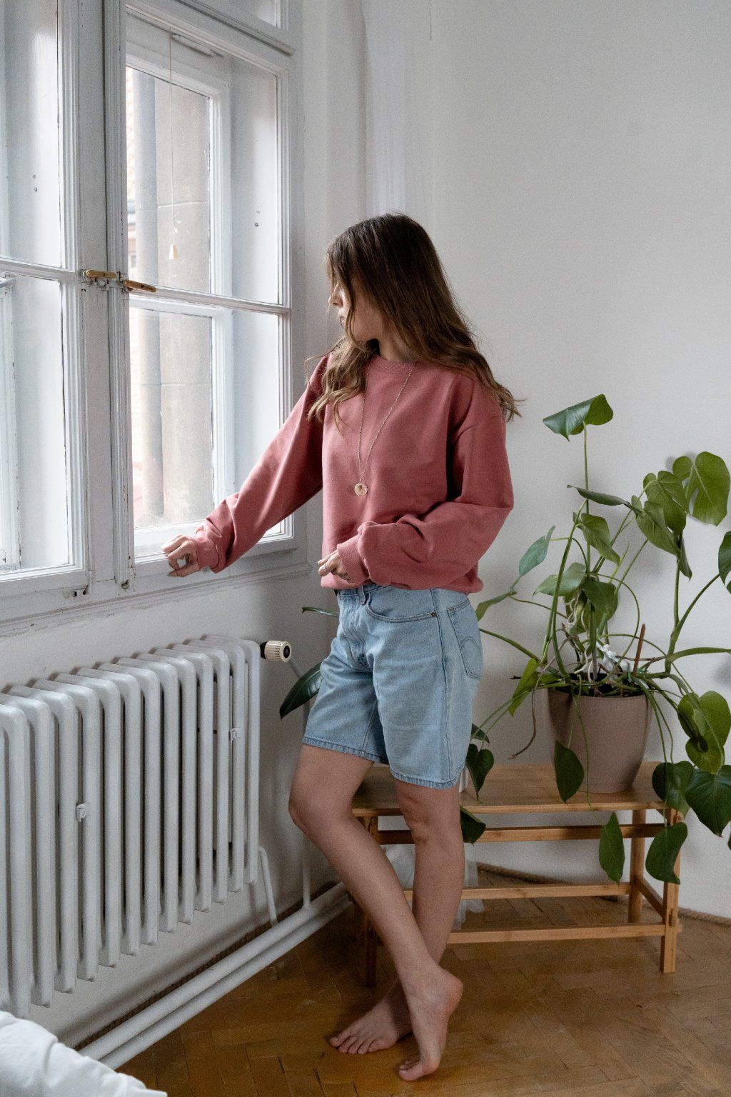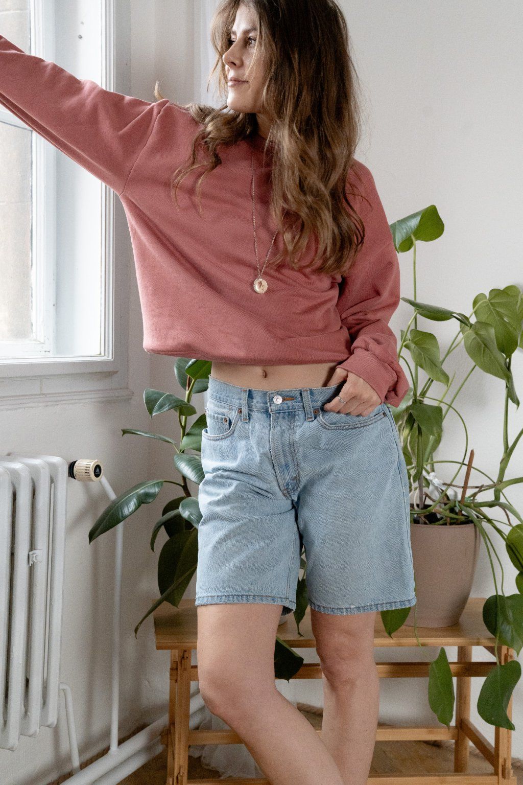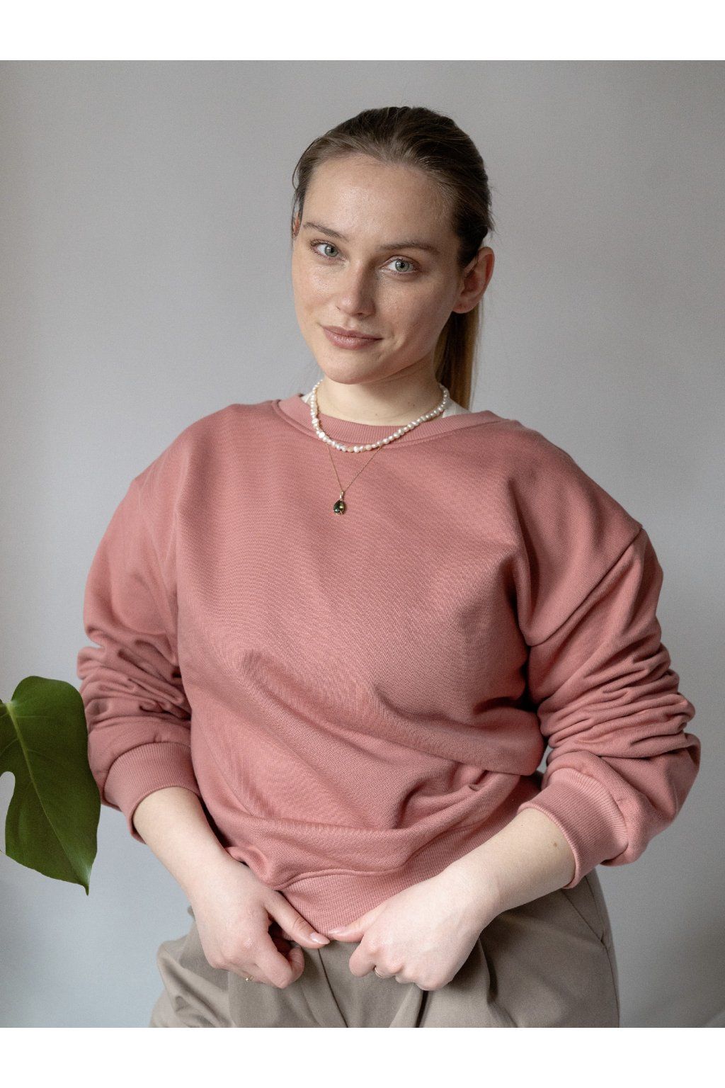 Střih: Mikina má volnější střih a rukávy. Pro extra oversized look si vyberte větší velikost, ohrňte rukávy a vpředu zastrčte přední kus mikiny do kalhot.