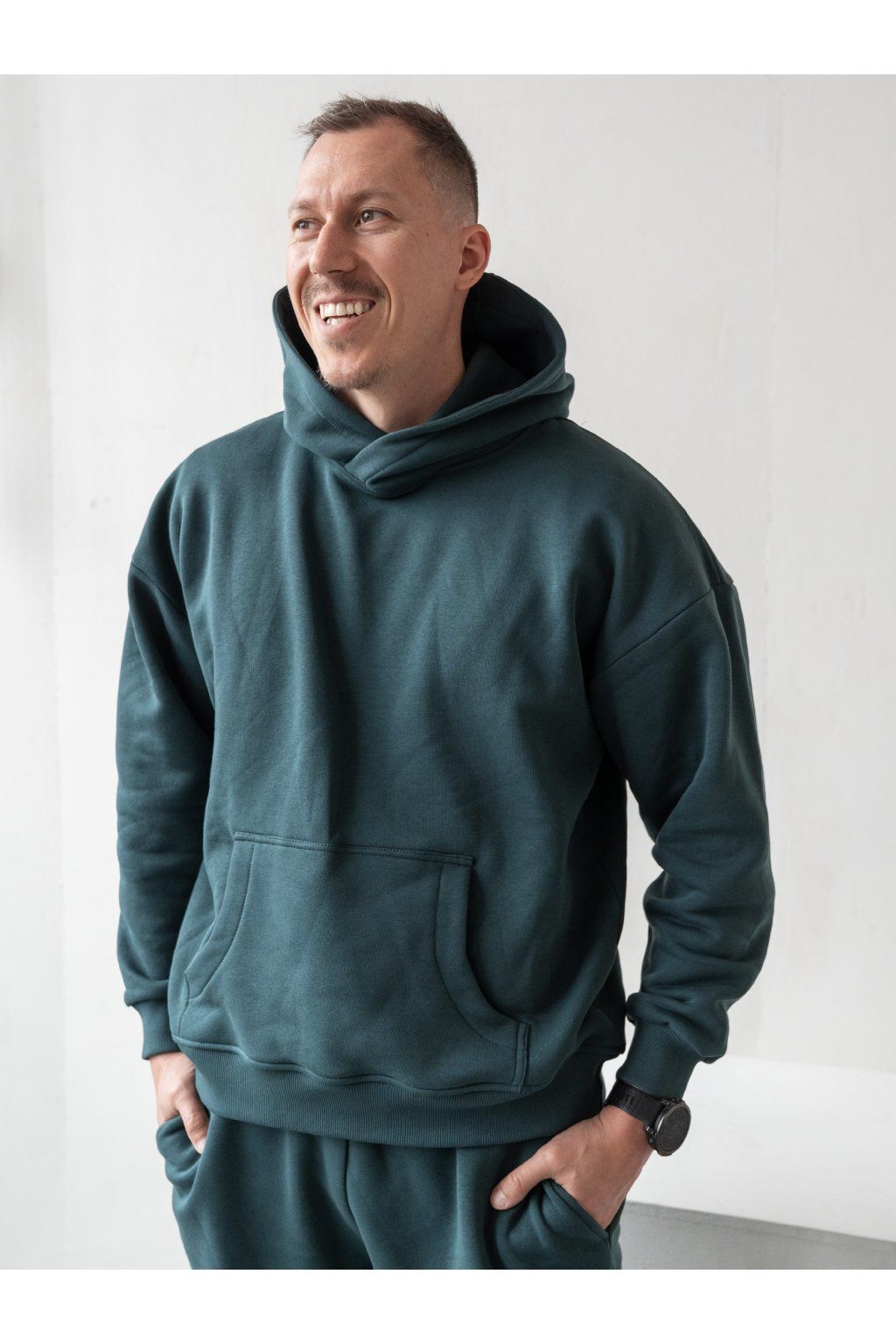 Střih: Mikina má volnější střih. Pro extra oversized look si vyberte větší velikost, ohrňte rukávy a vpředu zastrčte přední kus mikiny do kalhot.