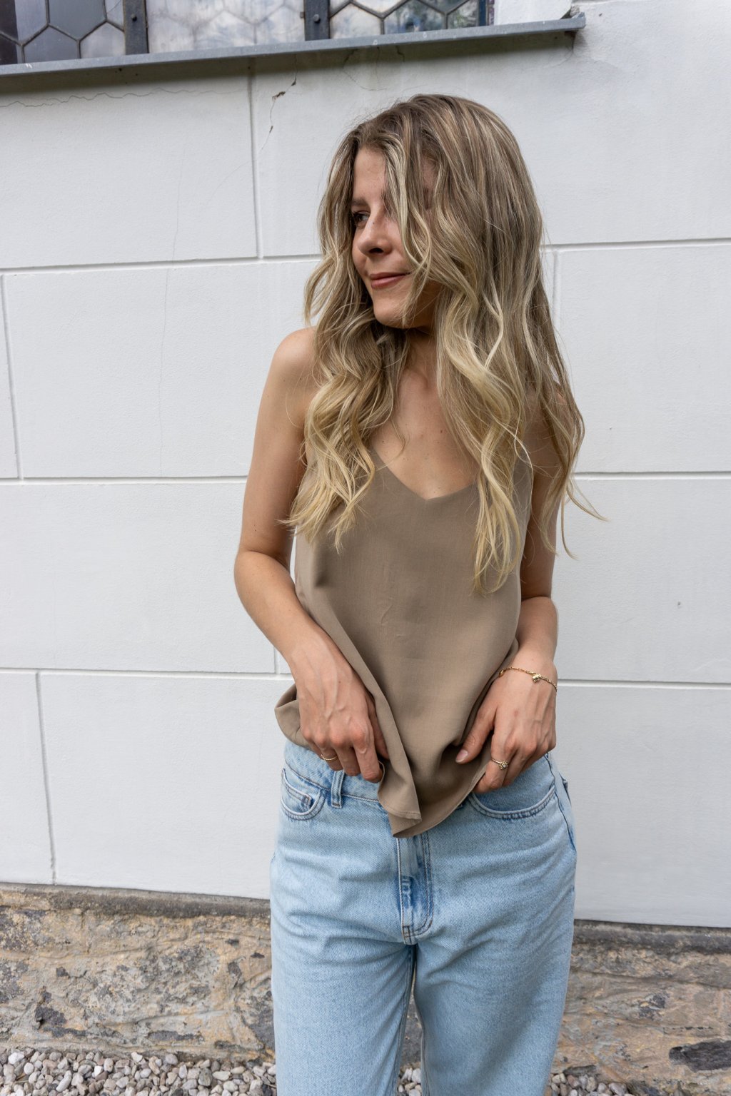 Tílko na tenká ramínka vyrobené z materiálu budoucnosti – Tencelu, bude vaší volbou číslo jedna, ať je léto nebo zima. V horkých letních dnech vás příjemně ochladí a v těch zimních naopak zahřeje (poslouží díky tomu jako extra vrstva pod svetr nebo mikinu). Jak střih, tak i barevné provedení jsou natolik nadčasové a univerzální, že ho budete moct jednoduše kombinovat se všemi svými oblíbenými sukněmi, kalhotami i kraťasy.